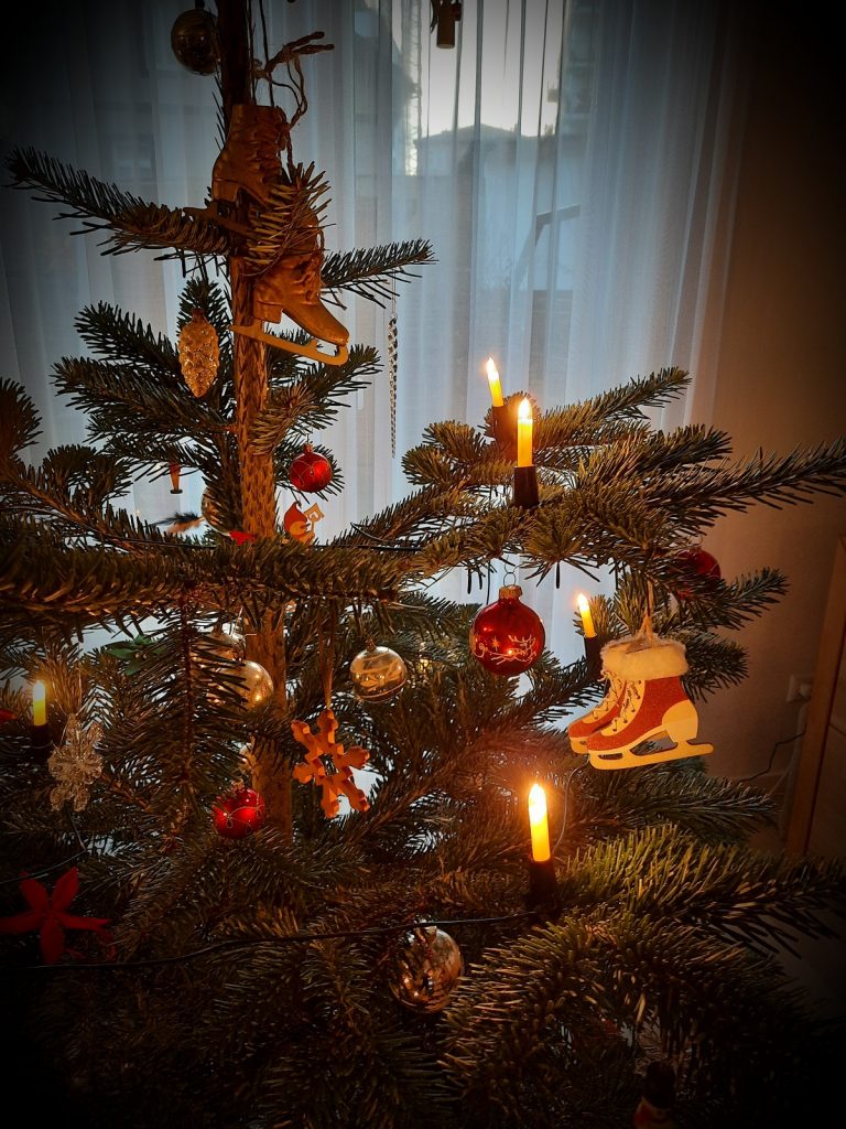 Als kleine Erinnerung für unsere Weihnachtsschnappschüsse, ein Bild von Lotte beim Weihnachtsbaum schmücken.
