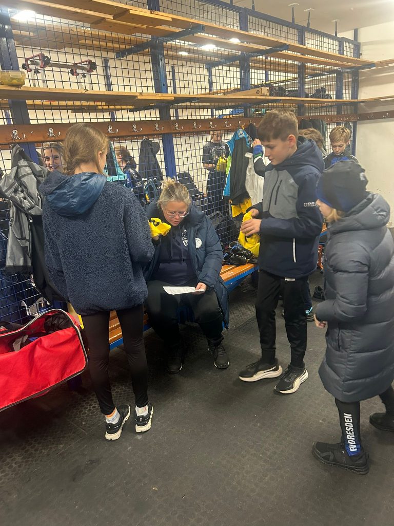 Angekommen, war es für unsere Sportler erstmal wieder eine Umstellung in einer kalten Eishalle zu laufen. Mit knapp 100 Sportlern war ein sehr breites Feld aufgestellt, davon 24 aus Dresden, plus ein Starter und zwei Schiedsrichter. Für unsere Kinder war es ein sehr lehrreicher und anspruchsvoller Tag, da neben der frühen Abfahrt, jeder Sportler sechs Läufe hatte.